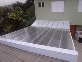 - Policarbonato: Moderno e extremamente resistente. Oferece proteção UV enquanto permite a passagem de luz natural, criando ambientes claros e protegidos. Disponível nas versões Alveolar e Compacto, é a escolha ideal para coberturas duráveis e seguras.